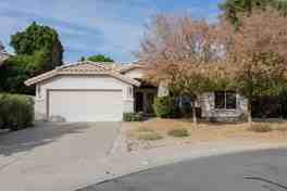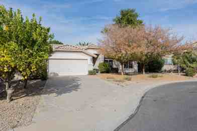 Functional living with a touch of sophistication defines this 3/2 Gilbert home. Vaulted ceilings and a seamless mix of tile and carpet create a bright, inviting interior, while large windows fill the space with natural light. The modern kitchen features stainless steel appliances, a breakfast bar, and abundant cabinetry - perfect for everyday cooking or entertaining. The master suite offers a dual-sink en-suite, walk-in closet, and private outdoor access. Additional bedrooms are versatile and comfortable, complemented by updated bathrooms and a spacious laundry room with washer and dryer. Step outside to an oversized backyard with lush turf, mature trees, and a covered patio, ideal for gatherings or relaxation. A 2-car garage and nearby community park complete this exceptional Gilbert home.