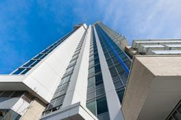FEATURES: Suite features air conditioning, insuite laundry, laminate floors, stone counters, stainless appliances, gas cooktop, microwave, integrated fridge & dishwasher and fully-tiled backsplash. Corner suite with lots of windows, offering lots of natural light and exceptional views of the North Shore mountains. Suite also has a functional den/office with sliding glass doors. Suite comes with storage locker and 1 parking stall.