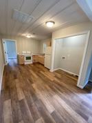 3-bedroom, 2-bath home featuring an open-concept kitchen and living room with electric range, refrigerator, and laundry closet. Luxury vinyl plank (LVP) flooring throughout, covered front porch, and fenced backyard. Central heat and air, gas heat, and gas hot water. Pest control provided. Storage building is not for tenant use. No pets.