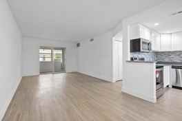 Bright, modern, and move-in ready! This beautifully updated first-floor 1-bedroom condo in a desirable 55+ Boynton Beach community offers luxury vinyl flooring throughout, a fully renovated kitchen with quartz countertops, white shaker cabinets, stainless steel appliances, and a stylish tile backsplash. The updated bathroom features a clean, contemporary design, while the in-unit washer/dryer adds convenience. Relax or work from home on the screened-in patio. One assigned parking space is located directly outside with plenty of guest parking available. The well-maintained community is close to shopping, dining, and just minutes from the beach. Full hurricane protection. 700+ credit score required.