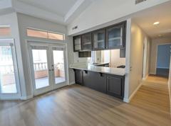 The kitchen shines with new quartz countertops, stainless steel appliances (gas range, refrigerator, dishwasher, and microwave), and ample cabinet space. Dine casually at the breakfast bar, in the kitchen nook, or next to the French doors with a view.