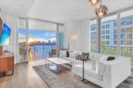 Enjoy breathtaking sunrise & sunset views from this flow-through corner residence at Monad Terrace, designed by Pritzker Prize winner Jean Nouvel. This architectural jewel of just 59 homes is surrounded by a central lagoon and lush climbing gardens. A private elevator opens into this 3 bed, 3 1/2 bath home in the sky, w/ floor-to-ceiling sliding glass doors & a 15 FT deep wraparound terrace framing sweeping views of the Downtown Miami skyline, Biscayne Bay, & South Beach. Kitchen features Gaggenau appliances and Calacatta marble countertops, perfect for entertaining. The primary bathroom offers a steam shower & soaking tub with bay views. Bayfront pool, jacuzzi, & gym. Close to Sunset Harbour & South of Fifth. Available January 1, 2026 with updated furniture coming.