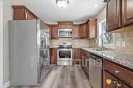 Sleeping and living areas in both up and downstairs. Large fenced in yard with 2 car garage, deck, porch and onsite parking. Updated floors, kitchen and baths, built in bookshelves and storage compartments throughout. Washer and Dryer included.