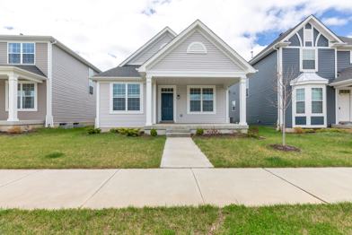 Beautiful almost brand new home in Streets Of Caledonia! You'll love the open floor plan in the main living area! Luxury vinyl plank flooring, open kitchen with center island, pantry, and smart fridge. The split bedroom floor plan offers the primary suite in the rear with walk in closet and private bath. Laundry room with washer and dryer. Rear entry 2 car garage, plus unfinished basement perfect for extra storage. Amenities include.25 acres of open space fountained lakes, walking trails with benches and gazebos, a neighborhood pool with clubhouse, covered pavilions, playground, dedicated bocce ball area, and pickleball court.