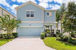 Stunning Key West Style Home that Blends Modern Luxury with Resort-Style Living! This like NEW 2022 build was designed with exceptional attention to detail. Featuring a fantastic open-concept floor plan, this home is loaded with high-end fixtures and energy-efficient LED lighting throughout. Step into the spacious living area, complete with a decorative electric fireplace and a built-in workspace as an added bonus, perfect for working remotely. The gourmet island kitchen is a chef’s dream, boasting ample cabinet space, quartz countertops, stainless steel appliances, and an additional wet bar sink. The dining area is adjacent to the kitchen and comfortably seats up to 10 guests, making it ideal for family gatherings or dinner parties. The first floor also includes an en suite bedroom with walk-in shower. Additionally there is a half bath adjacent to the dining area that also allows access to the pool area for guests. The garage has been transformed into a fun game room featuring a Pop-A-Shot basketball and other fun games, but can easily be converted back to a traditional garage if desired. Upstairs, you enter double doors to the luxurious primary suite, highlighted by tray ceilings and a spa-inspired bathroom with dual vanities and an expansive dual walk-in shower. The three remaining guest rooms are professionally decorated with theming also feature en-suite bathrooms. A versatile loft space has been converted into a cozy theater room, complete with a projector large screen and elevated seating perfect for movie nights. The laundry room is conveniently located on the second floor and has built-in cabinets as well. Start your mornings off right on the upstairs balcony, overlooking the incredible pool area below. The outdoor living space offers two covered lanais, perfect for summer BBQs and year-round entertaining. Reunion Resort is a 2,300 acre Private Golf and Tennis Community, just 6 miles to Disney and the parks, and a 30 min drive to the Orlando International Airport. Enjoy the Reunion Grande where there are several delicious dining experiences that include a Sushi Bar, The 7593 Chophouse both located on the Lobby Level. Eleven is a rooftop restaurant & bar to enjoy your favorite cocktail, tapas style cuisine or relax by the fireplace and pool. Located adjacent to the hotel, enjoy the Golf Clubhouse, the Seven Eagles Pool Pavilion & fitness center.