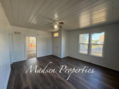 This unit boasts laminate flooring and new carpeting in the bedrooms. Fresh paint has been applied throughout the unit as well. The kitchen cabinets have been updated with a fresh coat of paint, and the kitchen features vinyl flooring along with a gas stove and refrigerator. The home is equipped with a swamp cooler and central heating. The property includes laundry hook-ups and off-street parking.