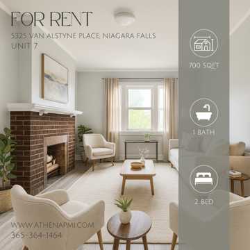 5325 Van Alstyne Pl #7, Niagara Falls, ON is a 2 bedroom, 1 bathroom apartment for rent. It is located in the Valleyway neighborhood of Niagara Falls. It has apartment amenities including in-unit laundry, central heat, and air conditioning. Cats and dogs are allowed, making it a pet-friendly apartment.