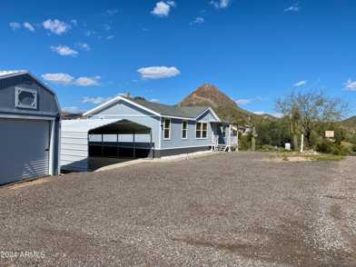 Well-maintained manufactured home on 2-plus acres in New River. There is plenty of room to spread out with a high four-stall carport, 2 shops, and 2 additional outbuildings. Enjoy carefree living with beautiful views of Gavilan Peak out your back door