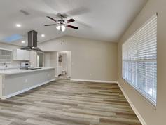 Discover your dream home in the heart of DeBary! This stunning 3-bedroom, 2-bathroom residence offers a perfect blend of comfort and style. Featuring a spacious family and dining room combo that flawlessly transitions between vinyl and carpeted flooring, this home is designed for both cozy family gatherings and elegant entertaining.