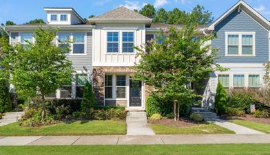 Beautiful townhome in Wendell Falls! Walk your kids to elementary school, close to shops and all Wendell Falls has to offer! New carpeting and interior paint. Entry level has beautiful, spacious kitchen with stainless appliances and eat in area. Large storage space, living room, half bath and garage access. Upper floor has primary suite with spacious bath that includes dual sinks and walk in closet, two good size secondary bedrooms and an additional full bath.