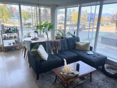 Welcome to CENTRAL! Iconic architecture by ONNI in central SE False Creek. You have the seawall at your doorstep, shops at Olympic Village, and walking distance to the Skytrain station. Generous well laid out 2 BED + FLEX w/ flr to ceiling windows and an open air balcony. Unit features engineered laminate flooring, open concept kitchen w/ S/S appl’s and gas cooktop, composite stone counters, and sleek kitchen cabinetry. Geothermal heating and cooling. The flex is ideal for a small office or in-suite storage.
