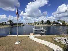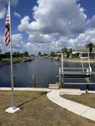 Nestled on a saltwater canal with a private dock, this light-filled home features luxury vinyl flooring, granite countertops, and picturesque views of the pool.