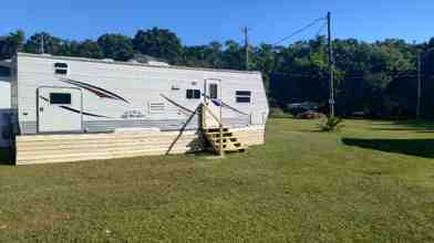 Welcome to Camelot! This 36 ft mobile home is very spacious with a slide out, queen size bed, bunk beds, full kitchen, full bathroom, central air and heat. Sets by itself in a large yard.
