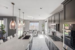 The gourmet kitchen is a central gathering point, complete with a massive island with bar seating, stainless steel appliances, and everything you need for cooking and entertaining. A formal dining area with seating for six provides the perfect space for family meals or dinner with guests.