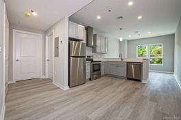 16 month old immaculate one bedroom. Kitchen with stainless steel appliances, vain quartz countertops with subway tile backsplash. Full size washer dryer in the unit. Plank floors throughout the entire apartment, along with recessed and LED lighting. Central AC. Trash, chute and recyclables on the same floor. On site fitness room. Garage space included in the rent.