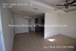 3011 Linda Vista St #D is a 1 bedroom, 1 bathroom apartment for rent. It is located in Edinburg. It has apartment amenities including in-unit laundry, assigned parking, high ceilings, microwave, and ceiling fan. Cats and dogs are allowed, making it a pet-friendly apartment.