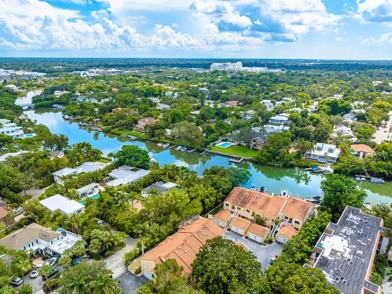 Experience the best of both tranquility and walkability to Downtown Sarasota in this west of the trail second floor condo. This beautifully renovated condo is available as an unfurnished annual rental and features 2-bedrooms, 2-bathrooms with den/3rd bedroom option is an incredible opportunity to live a few minutes from the bay, the marina, and downtown. This single level, corner unit has plenty of natural light and has been totally updated with features such as exposed-beam vaulted ceilings, large shower, contemporary light fixtures, and a wood burning fireplace. Enjoy other features such as custom kitchen cabinets, glass tile backsplash, newer granite countertops, and top of the line stainless appliances including built-in double oven and glass cooktop. The patio has been enclosed with large hurricane-proof sliding windows creating a bright dining area with a peek of the Hudson Bayou. This location offers a unique lifestyle and is walkable to Marie Selby Botanical Gardens and the beautiful Sarasota Bayfront and Marina. Hudson Landings is one of Sarasota's best kept secrets, with 12 residences tucked into a private, calm, and secluded location. This is an absolute must see with wow factor. Community pool is heated.