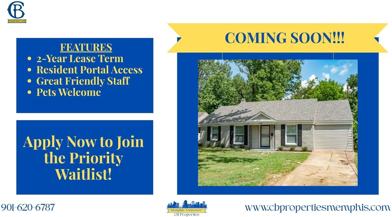 CB Properties does not advertise on or Facebook Marketplace. We will never ask you to wire money or request funds through a payment app on your mobile device. Instead, you will be asked to bring a property reservation fee to our office located at 1060 Brookfield Rd, Memphis, TN 38119. Please exercise caution and reach out to us directly if you have any concerns or questions.