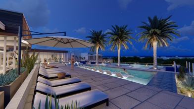 Rooftop lounge with resident bar, pool table lounge, and resident clubhouse