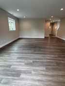The main floor includes the kitchen, living room, dining room and powder room with all new LVP flooring throughout. The spacious kitchen features amply cabinetry, quartz countertops and all appliances: refrigerator, range, microwave and dishwasher.