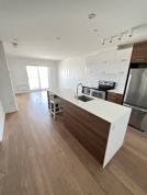 This unit features premium finishes such as hardwood oak floors, quartz countertops, a walk-in closet, a built-in vacuum system, and an immense balcony.