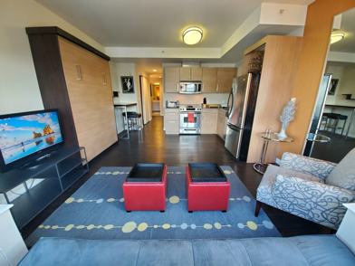 UNIT FEATURES: * Fully furnished studio * Murphy bed by Studio Becker * Sleeper sofa * Fully stocked kitchen * Luxurious bathroom with textured designer wall treatments * Shower over tub * Upgraded engineered hardwood floors * Openable window with custom duet window treatments * Textured wall coverings on selected walls * Washer/dryer in unit * 1-car Garage parking available for an additional fee served by direct elevator to 5th floor * Sorry, no pets *