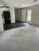 Inside, you'll find a spacious living area with plush carpeting and ample natural light streaming through the windows, creating an inviting atmosphere. The kitchen is equipped with a refrigerator and stove, and showcases stylish dark wood vinyl flooring, setting the stage for culinary adventures.