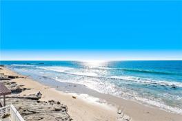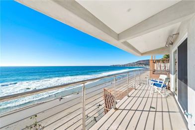 FURNISHED OCEANFRONT Laguna Village location! This is the lowest unit and closest to sand. This triplex sits just above the sand with private stairs to the beach. This lower detached two story apartment is remodeled, clean and simple and offers beautiful ceramic tile flooring that looks like hardwood throughout, new beautiful kitchen including stainless refrigerator, dishwasher, electric stove and microwave. Inviting dining area just off kitchen with spacious wrap around ocean view deck off living room for relaxing and sunbathing. Main level bedroom is in the back and is nice and quiet and offers King bed, recessed lighting and ceiling fan. Bedroom has a dresser and clothes rack only - no closet. The bath features glass enclosed shower, dual sinks and separate toilet room. The second bedroom is downstairs and features King bed. Downstairs bathroom has separate shower and soaking tub. Oak street beach is one of the best beaches in town for surfing, paddle boarding and skim boarding. Beautiful sandy beach, very picturesque and tranquil yet teaming with surf activity and nature. One block off coast highway, this quiet location offers off street parking for one car, and shared free laundry. Convenient to world class galleries, shops, and dining nearby. Submit on short term. Call for seasonal rates