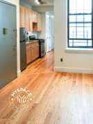 This 2 bedroom apartment features spacious living room, queen sized bedroom, stainless steel kitchen, modern bathroom, and hardwood floors.