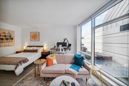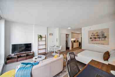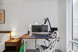 This luxury studio with a home office in the heart of SoMa is the perfect apartment for a remote worker looking for inspiration and a place to be productive. Steps from upscale restaurants, museums, and high-energy nightlife, get set to live, play, and work from home with everything at your fingertips, including access to indoor and outdoor terraces and lounges, outdoor pool, fitness center, business center, and more. This fully furnished apartment is custom designed for the remote worker looking for a comfortable and inspiring environment in which to be productive. The unit includes a fully-equipped kitchen, full bathroom, coffee machine and pods, in-unit laundry, smart TV, and all utilities. Most importantly, it features a home office set up with private gigabit internet that you won't find anywhere else. Home office setup includes: - Ultra-high-speed 1 Gigabit WiFi (Webpass) - Standing desk (Uplift) - Work chair (Uplift) - 34-inch ultra-wide monitor (Samsung) - Microphone - Webcam - Computer speakers - LED video light - Green screen - Keyboard - Mouse - Laptop stand - TOTU 16-in-1 Triple Display USB-C 3.1 Docking Station Amenities include: - Washer and dryer in the unit - 24 hour business lounge with computer and printer - 24 hour gym - Swimming pool - Yoga and fitness studio - Packages will be delivered to your room - Rooftop with city view - Backyard terrace - Lounge with coffee machine, water server and pool table - Parking available (additional charge) PLEASE NOTE: The laptop computer is not included in the home office setup. Parking fees: ' Compact = $450 ' SUV = $500 ' Oversized vehicle (truck) = $550 ' EV = extra $100