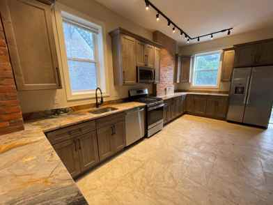 This brick 4 bedroom 3.5 bath home has been recently remodeled. It features an open floor plan on the first level with a large custom kitchen featuring custom cabinets and top tier granite. There are large windows and a new powder room. The second floor has 3 large bedrooms, 2 full baths, and a full size laundry. Two of the 3 bedrooms have walk in closets. The third floor has a bedroom, bathroom and an office. There are 2 separate HVAC systems for efficiency and comfort. There are both a private front porch, and a back patio. There is a fenced yard shared with the neighboring house we own. Behind the yard is a shared off street parking lot. One parking space per bedroom is permitted.
