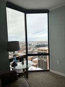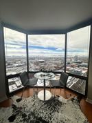The bright and open floor plan is highlighted by expansive windows that frame panoramic city and mountain views, bringing natural light into every corner of the home. The kitchen features stainless steel appliances, sleek countertops, and plenty of storage, making it as functional as it is beautiful. Adjacent to the living area, step out onto your private balcony, the perfect place to enjoy your morning coffee or unwind with a glass of wine.