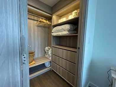 Experience contemporary luxury in this brand-new, never-before-occupied 1-bedroom unit, boasting unobstructed eastward views of the city. Revel in the meticulously curated features including built-in Miele appliances, Calacatta porcelain tiles and backsplash, a polished chrome Grohe faucet, as well as custom-built closet organizers and a heated, fully decked balcony. Elevating residential living with cutting-edge amenities, enjoy seamless 100% Wi-Fi connectivity and NFC building entry for a keyless system. Nestled in the vibrant Entertainment District and Toronto's burgeoning Tech Hub, represents the epitome of future-oriented living. This residence is ideally suited for young professionals, offering easy access to Osgoode Subway Station, the Financial District, and an array of entertainment attractions, all within a mere few minutes' stroll.Extras: Fully Furnished ! Internet included, Water IncludedInclusions: Furniture, Water, Internet, B/I fridge, oven, cooktop, microwave rangehood, dishwasher , window coverings, electric light fixtures, clothes washer and dryer