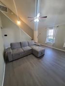 Furnished living room and kitchen with sofa, TV, oven, fridge, air fryer, and coffee maker. Bedroom is unfurnished. Shared bathroom with another tenant. In-home laundry & Street parking available