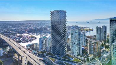 Welcome to VANCOUVER HOUSE, the most anticipated and iconic LEED Platinum certified building in Vancouver, designed by the world renowned Bjarke Ingles of BIG and developed by Westbank. this luxurious home spans over 854 square feet including two balconies, one for each room. a perfect kitchen with high-end Miele appliances, triple glazed windows, Kohler plumbing fixtures and 4 top gas Miele burner. The kitchen boasts Italian cabinetry with copper backsplash, brushed oak European wide hardwood flooring. The great layout Designed with a keen focus on functionality, comfort, and productivity, the following layout presents an ideal configuration for a work-from-home and 1 large storage lockers. views of city, water and mountain from both large covered balcony. Enjoy the world class facilities including state of art exercise centre "House Concept", 25 meter outdoor heated amazing pool, library, golf simulator, Fazioli flying piano lounge, art gallery lobby, friendly 24 hour concierge, fingerprint fob security system, fastest elevators in the city.