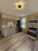 This apartment is fully renovated with beautiful light fixtures and brand new kitchen appliances.