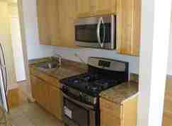 Newly renovated 1 bedroom apartment with new kitchen, granite countertops, stainless steel appliances, shaker cabinets, hardwood floors, open living/dining area.
