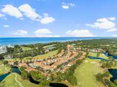 Welcome to this exquisite Mediterranean home in the Villa Lago community of Sandestin Resort. Sold fully furnished with a 2020 six-person golf cart, this custom residence is ideal for personal use or vacation rentals. With four spacious bedrooms and four bathrooms, the home accommodates up to 14 guests. Enter into a modern living room with soaring ceilings, perfect for entertaining. The galley-style kitchen features new appliances and a charming backsplash, seamlessly connecting to the living area. A convenient main floor bedroom is perfect for guests. The master suite boasts a jetted jacuzzi tub and a lighted walk-in shower. Upstairs, three oversized bunk beds sleep six children, along with an entertainment area. Enjoy tranquil pond views from the covered porch while grilling.