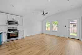Step inside and you'll immediately appreciate the thoughtfully designed layout and stylish finishes throughout. The kitchen is equipped with sleek stainless steel appliances, including a microwave, dishwasher, and electric stove, making meal preparation simple and convenient. Custom-made cabinets provide ample storage while adding a touch of elegance to the space. The attractive vinyl plank flooring throughout the home offers both durability and a modern aesthetic that complements the overall design.