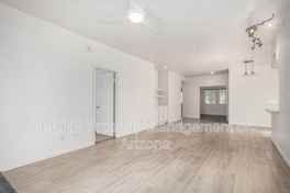 Discover comfort and elegance in this stunning 2-bedroom, 2-bath + Den residence at Mission de los Arroyos. Featuring soaring ceilings, wood-look flooring, and sun-filled French windows, the open layout is perfect for entertaining. The spacious living room with a cozy fireplace flows into the dining area and chef’s kitchen, complete with white shaker cabinets, granite counters, and breakfast bar. The primary suite offers a walk-in closet and spa-like ensuite with dual sinks and a sleek shower. Enjoy serene mornings on your private patio or indulge in community amenities—pool, spa, and fitness center—all just minutes from Scottsdale’s best dining and shopping.