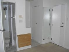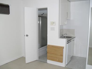The size of a bedroom with washroom, kitchenette, wood floors, air conditioned. There is central vacuum and laundry in the building.