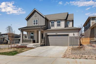Immaculate 2-story home built in 2023. Situated on a corner lot this 4bed, 3bath gem offers 2,371SF of finished living space with an unfinished basement & oversized 2 car garage! Step inside to discover an inviting open-concept floor plan enhanced by 9-foot ceilings & abundant natural light, creating an atmosphere of spaciousness & warmth. The heart of the home is the stunning white modern kitchen, equipped w/all appliances & huge kitchen island, pantry w/custom cabinetry, & pendant lights that illuminate the space w/style. Entertain effortlessly in the adjacent dining area or unwind in the cozy living room. Escape to the second floor, where you'll find four generously sized bedrooms, including a luxurious primary suite with coffered ceiling, a remote fan & breathtaking views of Longs Peak. Pamper yourself in the attached primary bath, boasting a double vanity & shower w/seat, while a convenient laundry area adds to the ease of everyday living. Backyard is fenced & fully landscaped with views of the Front Range. The modest lawn in the front & xeriscaping around the side ensure low-maintenance living without compromising beauty. Additional highlights of this exceptional home include luxury vinyl flooring throughout main level, an active radon system, a foyer with a storage closet, and a home automation system that connects to Ring for added security & convenience. Kinston offers a vibrant community atmosphere w/pocket parks, future plans for pool & school located nearby. The Kinston Hub is a stone's throw away & features coffee, drinks & food.