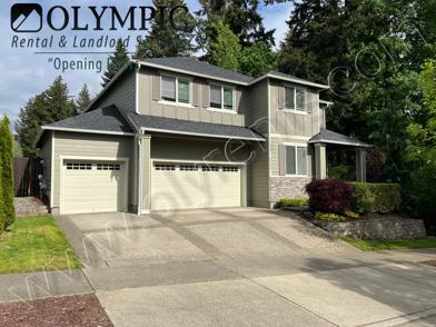 Welcome to this 4 bedroom + bonus room and office, 2.5 bath home! Built in 2015 w/ over 2800sq ft. Located in the Evergreen Pointe neighborhood of West Olympia. Open kitchen includes granite countertops with a spacious island, ample cabinetry and all stainless steel appliances (refrigerator, gas range, dishwasher & microwave). Living room includes a gas fireplace and built-in shelving. Formal dining room features arched doorways. Upstairs you will find a spacious hallway allowing access to your primary suite (which includes a 5-piece bath and walk-in closet), three additional bedrooms, a large bonus/family room, main bathroom and laundry room w/ front loading washer/dryer included. The fully fenced backyard with deck backs up to the community storm-pond for added privacy. Attached 3 car garage with opener. Gas forced air heating and high-efficiency electric water heater. Located on a dead-end street, conveniently located near shopping, dining and close to Hwy-101 & I-5 access. No smoking. Pets negotiable with additional rent and deposit. City of Olympia.