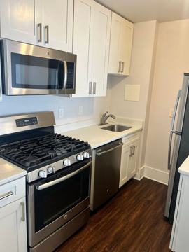 Come see this beautifully updated one-bathroom, one-bedroom home, featuring large windows and an open concept living space! This great unit is accented by gorgeous hardwood flooring, modern fixtures, and lots of natural light. The unit's pristine kitchen comes complete with stone countertops, plenty of storage, elegant white cabinets, and premium stainless steel appliances, including a gas range, microwave, and dishwasher. The bedroom includes a good amount of closet space, and the completely renovated bathroom is adorned by gorgeous floor-to-ceiling tile work and brand new ceramic fixtures. Stay comfortable in any weather with central air! This terrific find is completed with one off-street parking space.