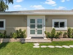Featuring over 2000 sq. ft. of luxury living space with 3 bedrooms, 3 bathrooms, and high-end finishes like tile flooring and 9 ft ceilings. The gourmet kitchen boasts stainless steel appliances, custom walnut cabinets, granite countertops, and a wine cooler. All impact windows and doors. Outside, enjoy a large pool, a beautifully tiled backyard with a grassy area, and a spacious covered patio overlooking the canal. Includes a 2-car garage, extra driveway parking, and energy-efficient natural gas appliances. Freshly painted and move-in ready!