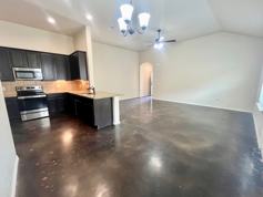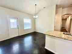 Spacious layout! Xeroscaped front for easy maintenance. High ceilings and gorgeous stained concrete floors. Two car attached garage with automatic opener. Open kitchen with recessed lighting and stainless appliances. Refrigerator included! Indoor laundry room. Ceiling fans throughout. Fenced yard with access from the living room and the primary bedroom, which includes covered back patio! Pet friendly. Resident responsible for $20/mo air filter delivery program. $150 admin fee due upon approval along with deposit. Renter's insurance required.