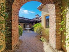 Solar based house, private pool and spa, putting green, home theater, car port, lutron lights throughout house, steam shower in master bath, Jack and Jill bathroom for back rooms, plantation shutters throughout house, fountain in covered courtyard with fireplace, gated culdesac community.