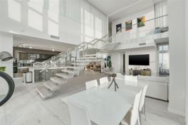 This dramatic, double-story furnished unit with private foyer is a modern bird’s nest in the sky with two-story glass walls & sweeping views of Biscayne Bay, the Miami skyline, & western sunsets. Approx 4,500 SqFt of interior space & 400 SqFt of outdoor terraces. It offers the flow of a single-family home with the thrill of high-rise living. The oversized primary suite features a spa-inspired bath & generous walk-in closets. Also, “lock-out” studio with its own entrance, kitchenette, & full bath perfect for guests.
