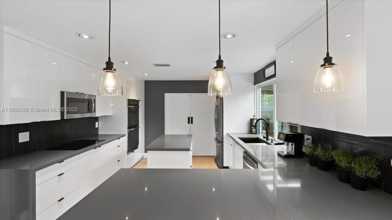 This recently updated single-family home offers 3 bedroom, 2.5 bathrooms, and a spacious office that can be converted into a fourth bedroom. The home features new impact hurricane windows and doors, and a 2-car garage with extra driveway parking. A huge balcony is also connected to a new outdoor kitchen, with a workstation sink, a coal barbecue with a rotisserie grill system, and a bar. Fire pit area, large west-facing completely fenced-in. This private backyard includes mature trees and fruit trees around the entire property. The backyard also includes a charming pergola, waterfall fountain, and one more covered space. Located in Boca Landings.