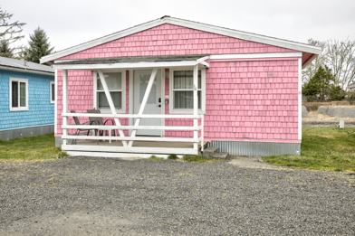 The cottage has a small patio for a bit of outdoor relaxation. The resort offers a shared playground and a few recreational activities like horseshoes and fire pits for an evening bonfire. Walk just five minutes to the beach, where you can enjoy beachcombing, casual strolls, or just taking in the sea breeze.